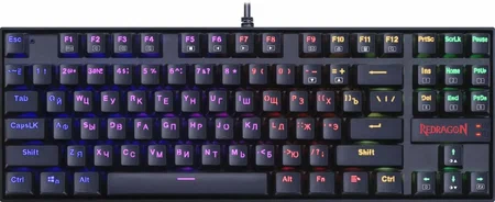 Redragon K552 Kumara – это бюджетная механическая клавиатура, которая предлагает отличное соотношение цены и качества. Она оснащена механическими переключателями Outemu Blue, которые отличаются громким щелчком и ощутимым тактильным откликом. Клавиатура выполнена в компактном форм-факторе TKL и имеет металлическую верхнюю панель. Масса оборудования составляет 650 грамм, а длина кабеля – 1.8 метра. Стоимость этой модели начинается от 3500 рублей.