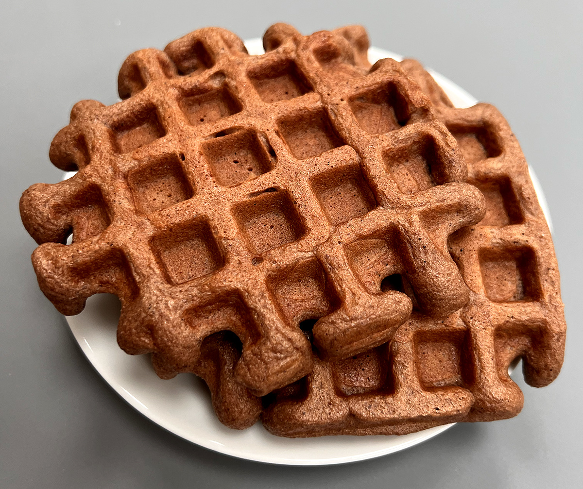 Выпекаю в вафельнице. Вафельница любая подойдет! По времени не пишу - для каждой вафельницы время своё. Пекутся вафли недолго (от 2 до 4 минут)