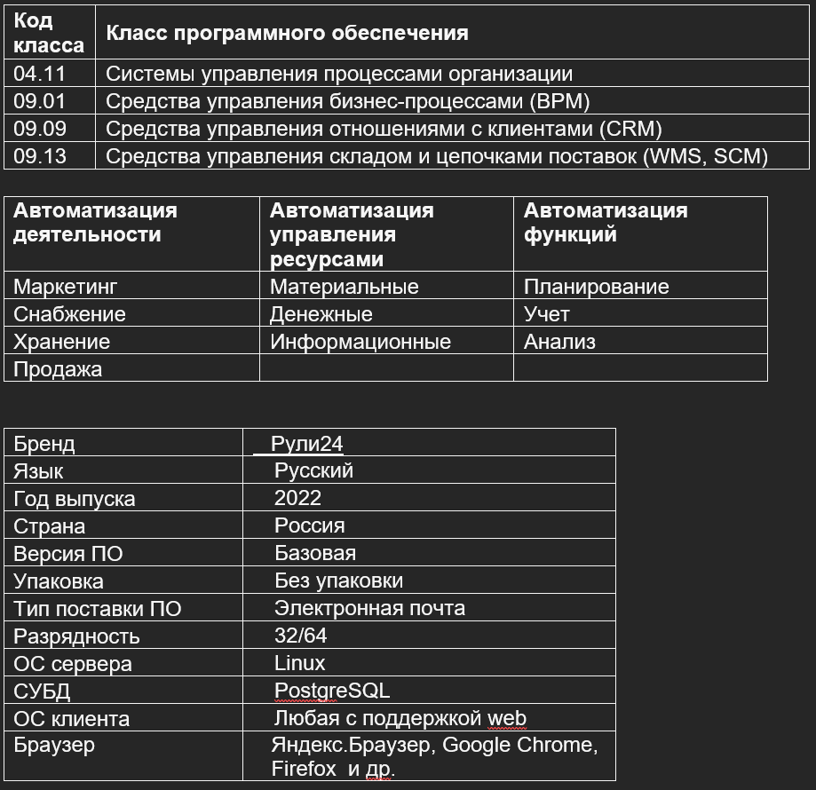 Облачная система управления торговлей Ruli24 OnlineStore предназначена для коммерческих подразделений предприятия, осуществляющих закупки, хранение запасов и продажу товаров и услуг. В информационной системе управления торговлей автоматизируется оптовая и розничная торговля, торговля через дилеров, маркетплейсы и интернет магазины. Система управления закупками автоматизирует процессы формирования заявок на закупки, получения коммерческих предложений, счетов и договоров поставщиков. Обеспечивает формирование прайс-листов закупочных и учетных цен ТМЦ. Ведется учет всех графиков поставок и графиков платежей с возможностью отражения статей бюджетов. Отслеживаются цепочки поставок. Система оперативного управления складами позволяет вести учет запасов на складах, резервирование товаров покупателей и учет поставок поставщиков. Отражение движения товаров на складах осуществляется за счет регистрации первичных учетных документов: накладных на отпуск на сторону, приходных ордеро