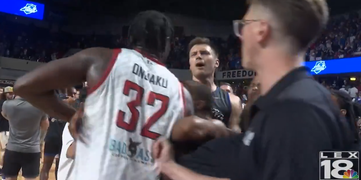 Команда Сестины одержала победу. Онуаку после сирены начал что-то выговаривать оппоненту, а затем плюнул ему в лицо. После этого баскетболистов растащили одноклубники. «На протяжении всей игры мы что-то говорили друг другу, все было хорошо, никто не позволял себе вольностей, ничего личного. Но затем все как раз перешло на личный уровень. И он пошел на меня, я отпрянул, а он плюнул мне в лицо... Мистер Онуаку, пусть все останется, как есть. Ничего такого, просто плюнул мне в лицо. Пусть это останется на его совести», – заявил Сестина после матча. Basketball Tournament ежегодно проводится в США, команды ведут борьбу за приз в 1 миллион долларов. Изображение: трансляция NBC