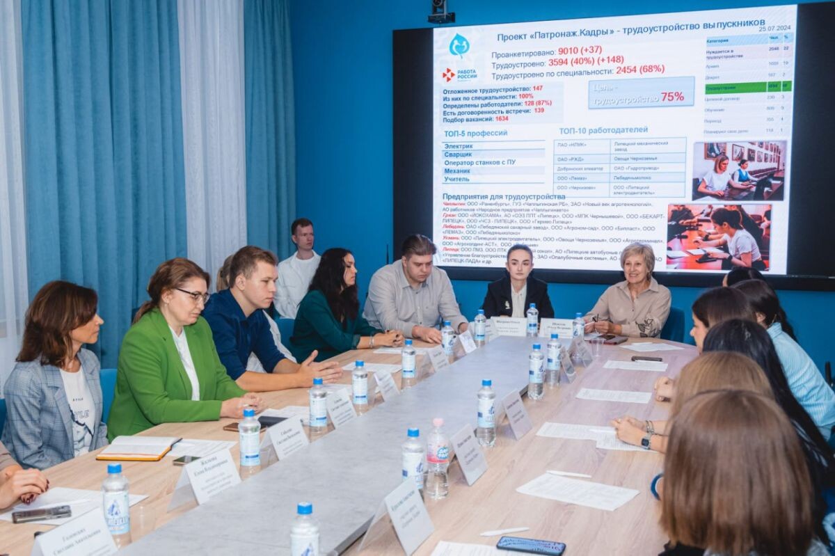 Проект «Патронаж. Кадры» от центра занятости Липецкой области начал свою работу в апреле 2024 года. Основными востребованными вакансиями, на которые были устроены выпускники, являются: электрик, сварщик, оператор станков ПУ, механик, а также учитель. Среди предприятий, трудоустроивших молодых специалистов, – ПАО «НЛМК», ООО «Черкизово», ООО «Бипласт» и многие другие.