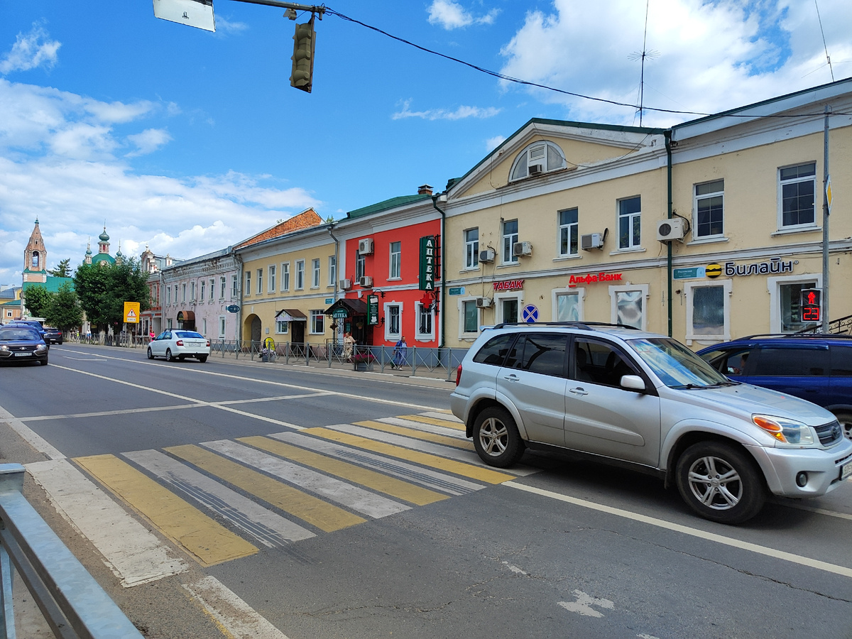 Обратили внимание, что я не пишу название главной улицы? В Переславле-Залесском очень необычно подошли к этому вопросу. Проходящая через весь город прямая улица - это ничто иное, как трасса "Холмогоры" или Ярославское шоссе, или автодорога Е115. И хоть есть объездная дорога вокруг города, но на главной улице Переславля-Залесского движение очень интенсивное. Идут и легковушки, и грузовики. И эта же дорога по совместительству является главной улицей, разбитой на участки по несколько кварталов. Каждый участок имеет свое название: Московская, Кордовского, Ростовская, Советская, Урицкого, Троицкая. По сути это все та же самая прямая главная улица.