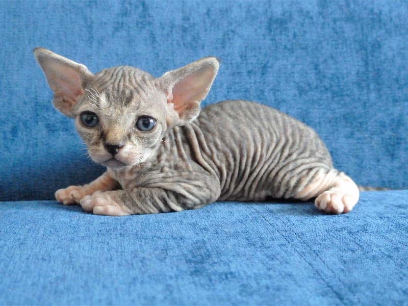 ID371 Девон-рекс – порода удивительной и неординарной внешности, история которой началась в далёкие 1960-е годы, когда в английском графстве Девоншир родился котенок с необычной кудрявой шерстью. Долгое время девон-рексов отказывались признавать за новую породу, объединяя их с уже известными и признанными к тому времени корниш-рексами. Но упорная и целенаправленная работа энтузиастов-любителей над породой принесла свои плоды и в 1979 году CFA набралась смелости признать необычных кошек. При первом взгляде на девон-рекса кажется будто видишь перед собой инопланетное существо или эльфа из сказки. В глаза то и дело бросаются огромные уши животного, низко посаженные на голове. Далее приковывают внимание необыкновенные овальные глаза по цвету соответствующие окрасу шерсти и конечно главная деталь в облике девон-рекса – его кудрявая мягкая шубка. Большими размерами кошки этой породы похвастаться не могут. Вес взрослого кота редко перешагивает планку в 4,5 кг. Во-первых, нужн