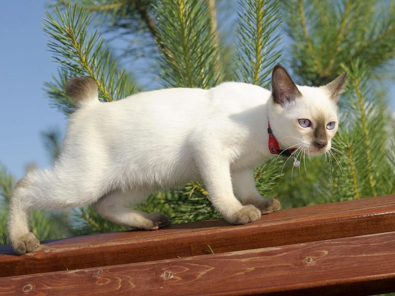 ID372 Меконгский бобтейл – аборигенная восточная порода кошек, вокруг которой сложено немало легенд. Согласно самому популярному преданию предки этих красавиц жили в роскошных дворцах Юго-Восточной Азии и на них была возложена миссия по охране королевских сокровищ. В Европу (Англию) первые представители породы попали из Бангкока в 1884 году, а затем и в Америку (в 1890 г). В 2004 году на заседании Генеральной Ассамблеи WCF порода была утверждена под именем «Меконгский бобтейл» (ранее порода носила название «тайский бобтейл»). Меконгский бобтейл сохранил величавость и красоту своих легендарных предков – храмовых кошек. Представители породы – это стройные и изящные кошки среднего размера, имеющие «диковинный» короткий хвост, состоящий из узлов или крючков в любой комбинации. Длинный хвост (более 1/3 длины тела) является недостатком и ведет к дисквалификации. Голова имеет мягкие округлые контуры. Уши крупные, широкие в основании, немного отклонены назад. Глаза овальной форм