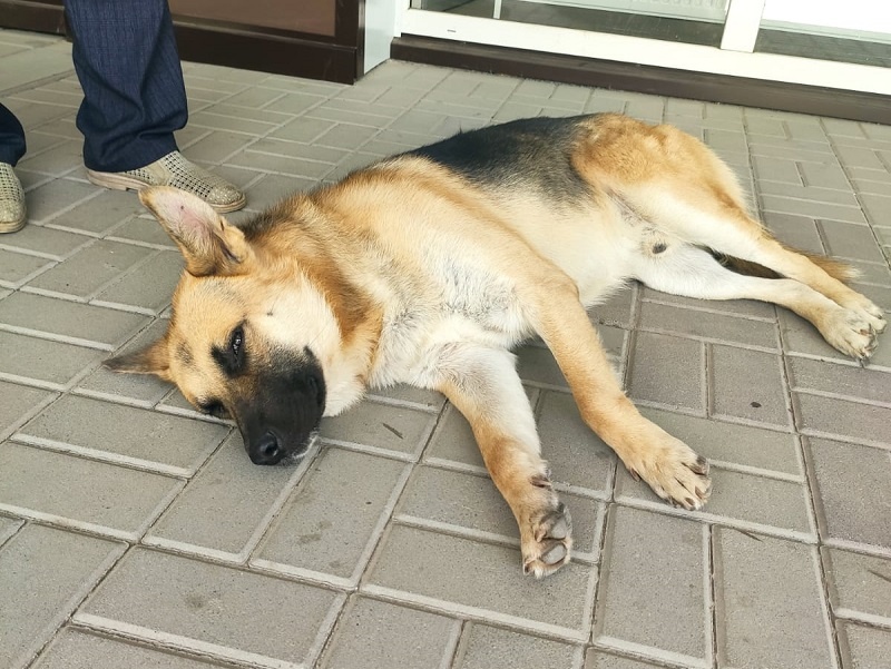 Она ползла к людям: умирающую овчарку обнаружили на ступенях поликлиники