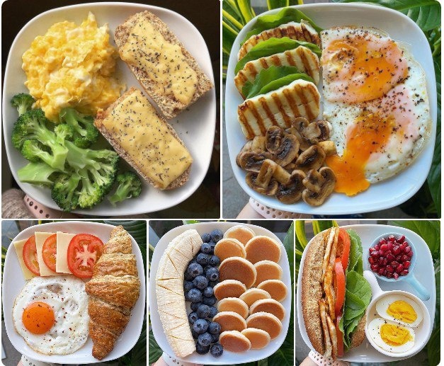⠀ ❗️ Сытный завтрак - залог энергии и хорошего настроения на весь день 😉👌 ⠀ ✅ ЗАВТРАК КБЖУ 372/33/25/1 Яичница с сыром халуми и шампиньонами ▫️Шампиньоны 100 г ▫️Сыр халуми 45 г ▫️Яйцо 3 шт ▫️Специи, зелень по вкусу ⚪️Шампиньоны нарезать и обжарить. Отдельно приготовить яйца. Сыр нарезать и обжарить на сковороде/гриле с 2-х сторон ⠀ ✅ ЗАВТРАК КБЖУ 396/20/17/38 Яйцо с сыром и круассаном ▫️Круассан 70 г ▫️Яйцо 1 шт ▫️Сыр 30 г ▫️Помидор 50 г ▫️Специи по вкусу ⚪️Яйцо обжарить. Сыр и помидор нарезать ⠀ ✅ ЗАВТРАК КБЖУ 438/39/7/52 Творожные оладьи с бананом ▫️Творог мягкий 250 г ▫️Яйцо 1 шт ▫️Мука 30 г ▫️Банан 70 г ▫️Ягоды 50 г ▫️Подсластитель по вкусу ⚪️Смешать творог, яйцо, муку и подсластитель до однородной консистенции. Выпекать с 2-х сторон на среднем огне (без масла на антипригарной сковороде). Подавать с фруктами и ягодами ⠀ ✅ ЗАВТРАК КБЖУ 360/27/10/38 Сэндвич с курицей ▫️Куриное филе 60 г ▫️Ц/з булочка 80 г ▫️Помидор 50 г ▫️Листья салата 15 г ▫️Яйцо 1 шт ▫️Ягоды/фрукт 50 г ▫️Специи