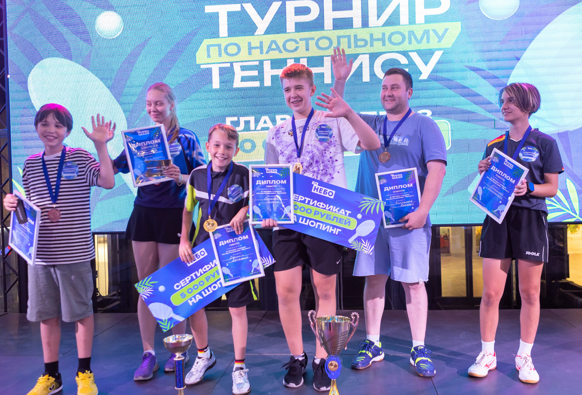 —Я очень рад поучаствовать в летнем турнире по настольному теннису, — говорит победитель в абсолютной категории Никита Саматов, который выиграл сертификат на 10 000 рублей на шопинг в ТРК «НЕБО». —Я шесть лет занимаюсь настольным теннисом и был настроен на победу. Очень мотивировал главный приз. Я часто бываю в ТРК «НЕБО», играю здесь с друзьями, и конечно же, уже знаю, на что потрачу выигранную сумму. Хочу пожелать всем заниматься тем видом спортом, который будет приносить вам удовольствие.
