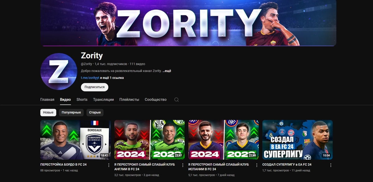 С самого детства я активно снимал видео на ютуб, но это было скорее неосознанное развлечение, чем какое-то серьезное хобби. Но, все изменилось 2 января 2022 года, когда я создал свой ютуб канал Zority. Изначально я вдохновлялся такими ютуберами, как Евонеон, Руха, Панда Фх и др. Так, я начал снимать карьеры за разные клубы. Со временем мой ютуб канал стал развиваться, и на данный момент он насчитывает около 1400 подписчиков! Но, сейчас активно ходят слухи о том, что Ютуб в России могут закрыть, поэтому теперь мой контент будет выходить и здесь!