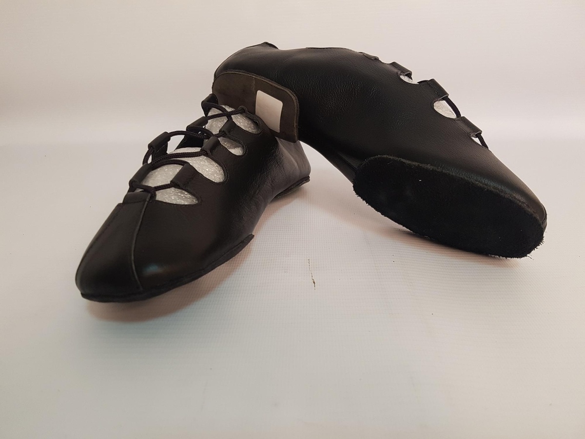 Поскольку сказка про Красную Шапочку средневековая, для своей героини я решила сделать башмачки самого простого кроя, типа вот таких гилли (обувь для шотландских танцев): Материал - искусственная кожа с замшевой поверхностью, подошва - полиуретан. Поскольку колодки для прямой стопы у меня не было, натягивала заготовку на ногу куклы. Туфли надеты на гольфы, связанные из шерсти для вышивания, на двух спицах. Последняя деталь костюма - корзинка. Она куплена, внутри - кусок ткани. Возможно, заморочусь с пирожками. Пока погода плохая, выйти на фотосессию нельзя. Жду хорошей и, наконец, закончу образ.