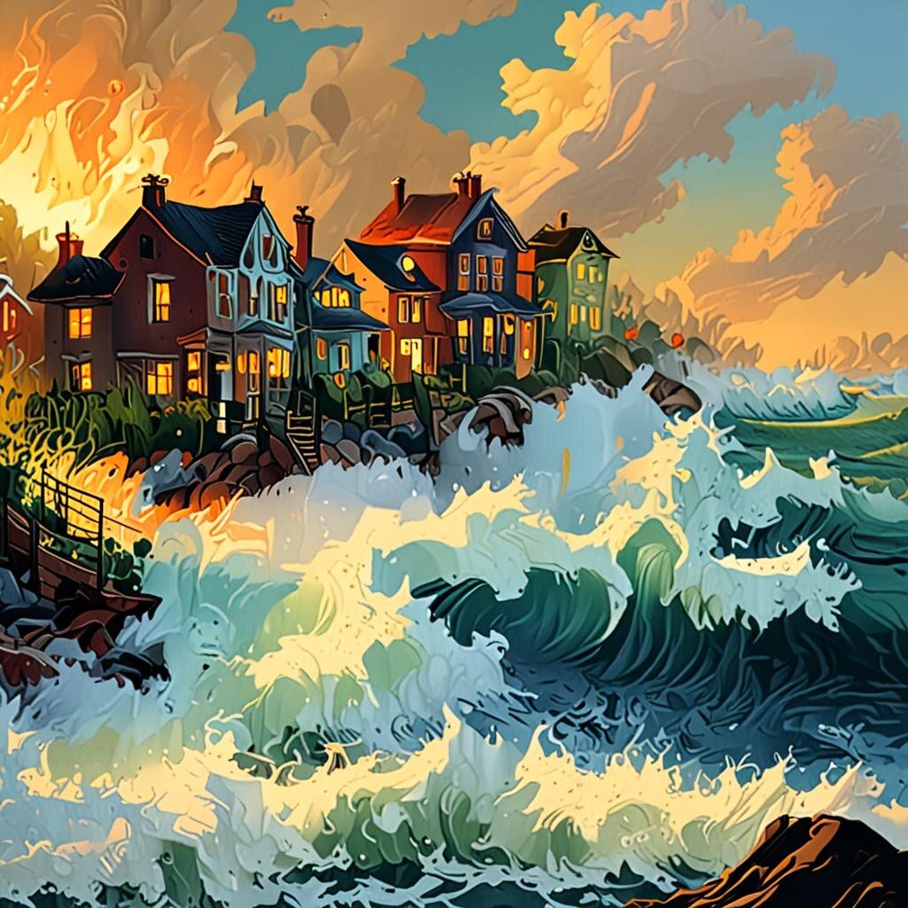 Волна смывала, всё круша На брег обрушивая воды, Огонь всё поглотить спеша, Съедал сады, дома, заводы! А ветер не теряя время Тащил всё быстро в водный плен. Настало жутких свистов бремя, И глохли шум и звук сирен! Лишь где-то медленно качаясь, Рукой придерживая стул, Сидел мальчишка удивляясь: "Ого! Вот это я чихнул!"