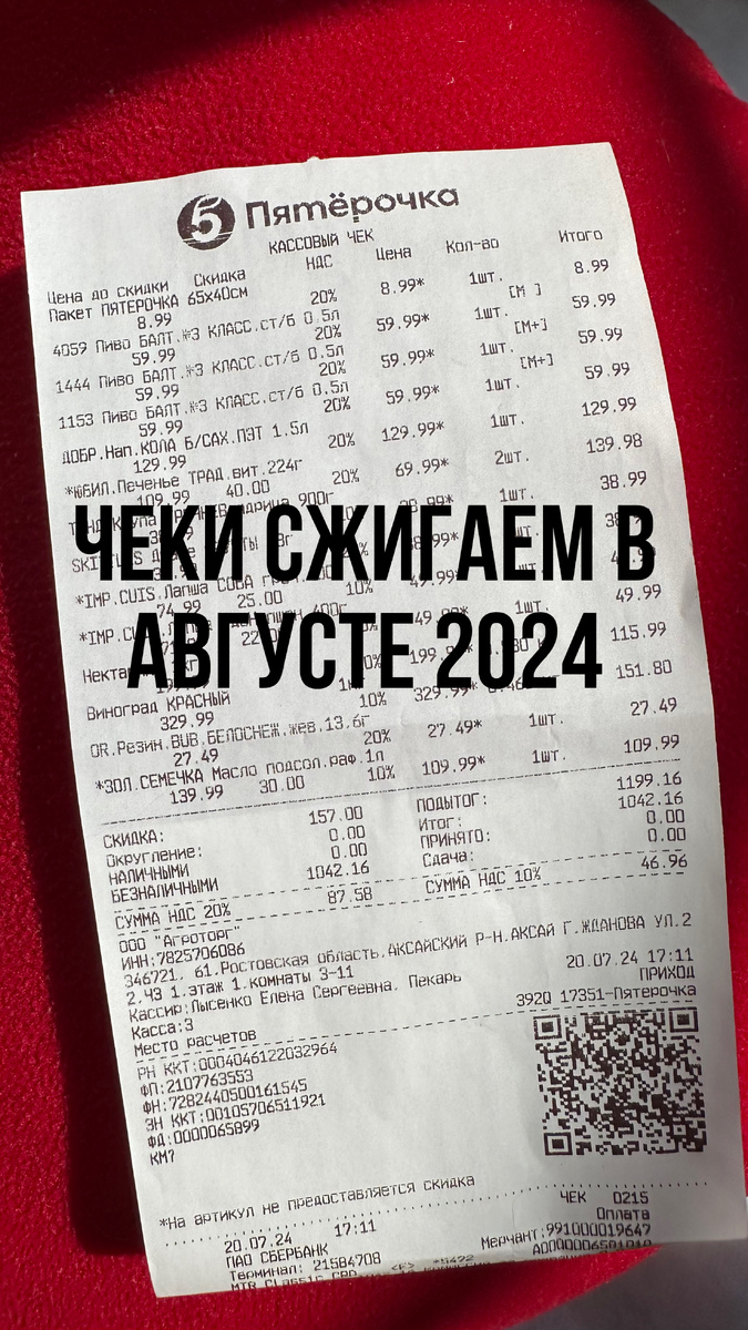 Даты сжигания чеков и цель сжигания в августе:
