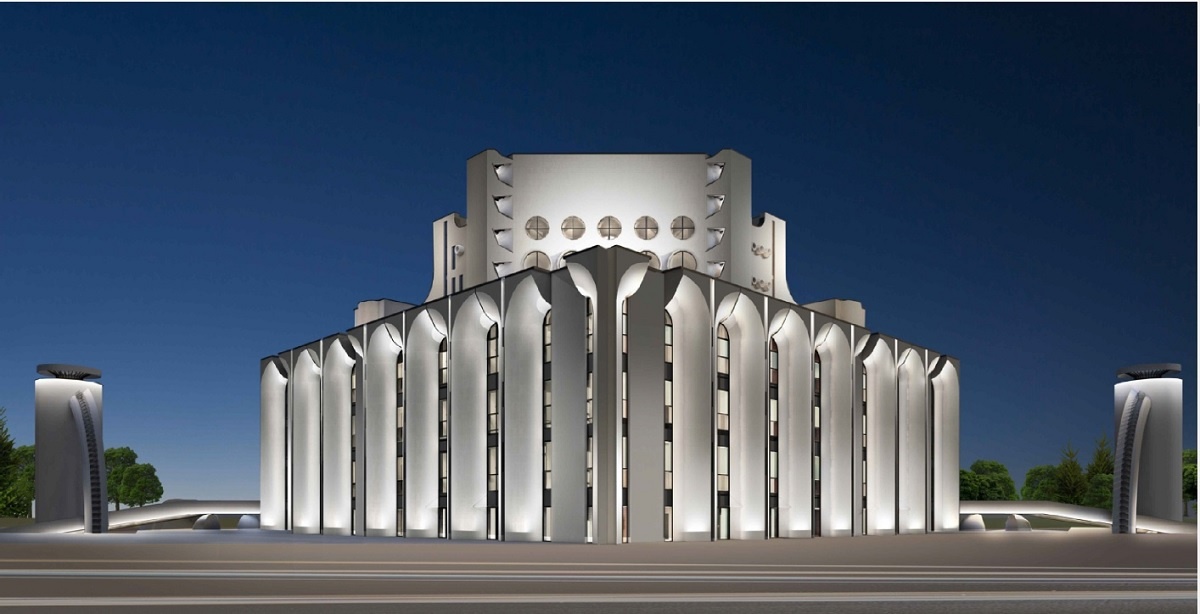 Здание театра имеет строгую геометрическую форму и состоит из нескольких блоков разной высоты. Главный фасад выделяется массивным стеклянным витражом, что придает ему легкость и прозрачность. В центре композиции находится просторный вестибюль с высоким потолком, который создает ощущение простора и света. Важной частью дизайна является использование натуральных материалов в отделке, таких как камень и дерево, что подчеркивает связь с местными традициями.