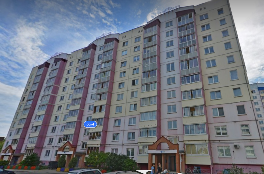Однушка находится в Октябрьском районе Витебска по адресу улица Правды, 66/4. Рядом с домом несколько продуктовых магазинов, недалеко — остановка общественного транспорта.