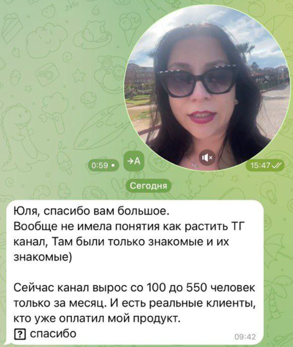 Благодаря стратегии позиционирования и проработки личного бренда за 2 месяца, Татьяна привлекла новую аудиторию и быстро сделала 5 продаж по 100000 рублей, благодаря новым подписчикам в Telegram.