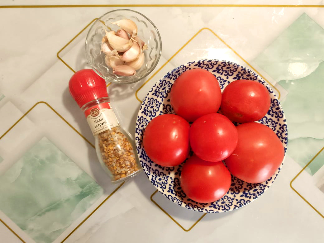 Здравствуйте мои дорогие. Сегодня я вам покажу очень вкусную и простую закуску. Со стола уходит на ура. Нам понадобиться: 6 средних помидор 10 зубчиков чеснока Перец (можно черный, красный, как нравиться) Соль Укроп Помидоры нарезаем кружочками толщиной 5 мм. Чеснок режим очень мелким кубиком. Почему я его не делаю через чеснокодавку? Чтобы он не был кашей и лучше распределялся по помидору. Укроп мелко шинкуем. У меня в перечнице семена чили сразу вместе с солью. Соль и перед можно использовать и по отдельности. Берем наш кружочек помидора и распределяем по нему немного чеснока. Затем солим и перчим. Сверху посыпаем небольшим количеством укропа. Укладываем на сервировочное блюдо и подаём к столу. Если помидоров получилось много, то их можно укладывать друг на друга. Вот такой простой и очень вкусный рецепт. Приятного аппетита))