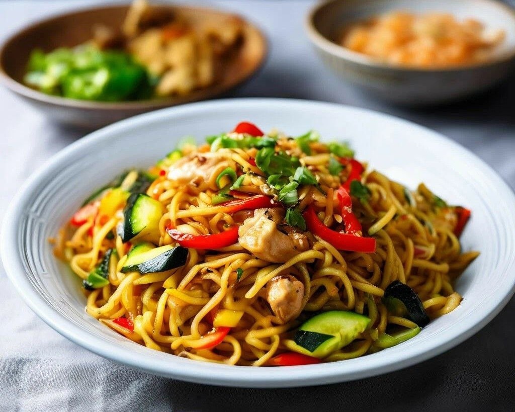 Лапша вок с курицей и овощами — это быстрое и вкусное блюдо, которое отлично подходит для обеда или ужина. Яркие овощи, нежная курица и ароматная лапша, приготовленные в воке, создают насыщенный и сбалансированный вкус. Блюдо готовится быстро, сохраняя все полезные вещества ингредиентов. Ингредиенты (на 4 порции): Куриное филе — 400 г Лапша для вока (удон или соба) — 300 г Морковь — 1 штука Болгарский перец — 2 штуки Кабачок — 1 маленький Лук репчатый — 1 штука Чеснок — 3 зубчика Соевый соус — 5 столовых ложек Кунжутное масло — 2 столовые ложки Растительное масло — для жарки Кунжутные семена — 1 столовая ложка Свежая кинза или петрушка — для подачи Соль и перец — по вкусу Время приготовления: Общее время приготовления: 30 минут Калорийность на 100 грамм: Подготовка ингредиентов: Приготовление: Подписывайтесь на канал "Вкусно Очень"