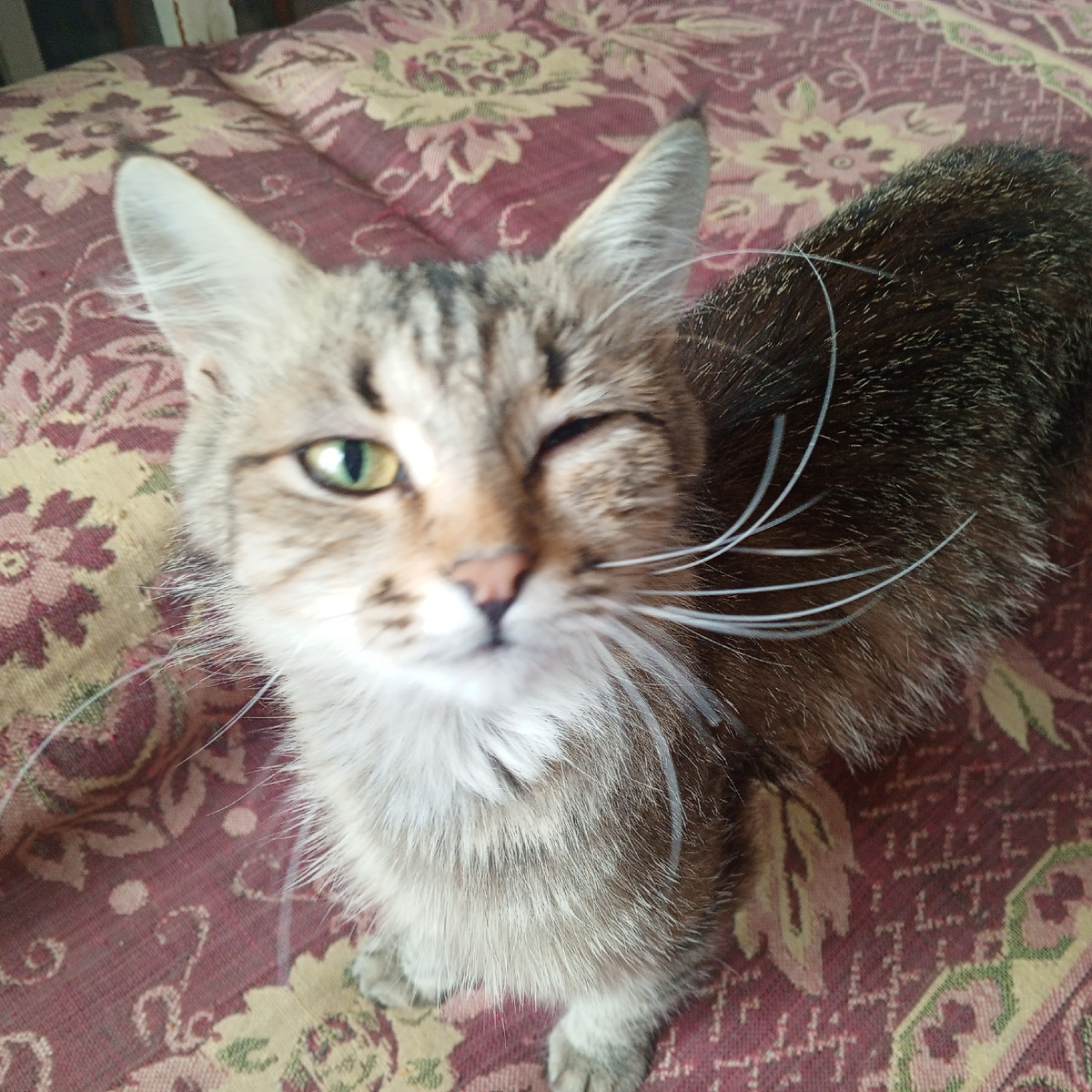 Вот такой мой несчастный ребенок вчера прибежал жаловаться на нахалку осу. А я предупреждала, чтобы она не лезла, куда не надо! Поначалу чесалась, и очень сильно. Позвонила снохе, она у меня ветврач, спрашиваю, что делать то? - Проверить, осталось ли жало, если это пчела , осы жал не оставляют обычно. И пахнуть будет пчелой. Холод на то место, куда укусили, и тавегил дать обязательно. После тавегила Кузютка успокоилась и даже поспала немного. Дала ей внепланово сметанки, холодный компресс сделала ненадолго. К вечеру ей стало полегче . Сейчас ребенок, похоже , поправился по полной программе. Дурит! Видео будет следующей публикацией.