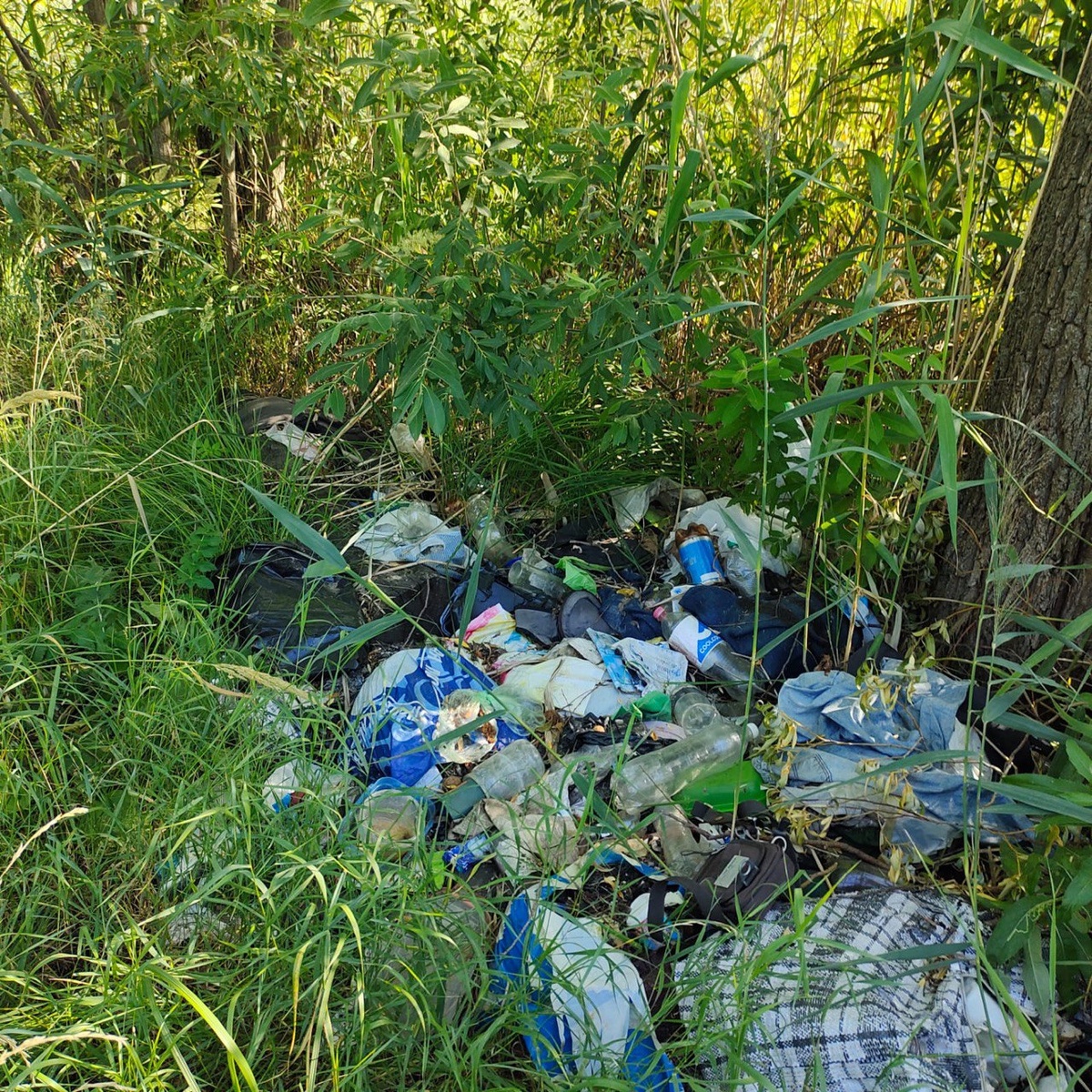 Львиная доля всего мусора – отходы после отдыха. Это одноразовая посуда, различная упаковка, пластиковые бутылки. Также среди мусора встретилась палатка с одеялами и подушками.