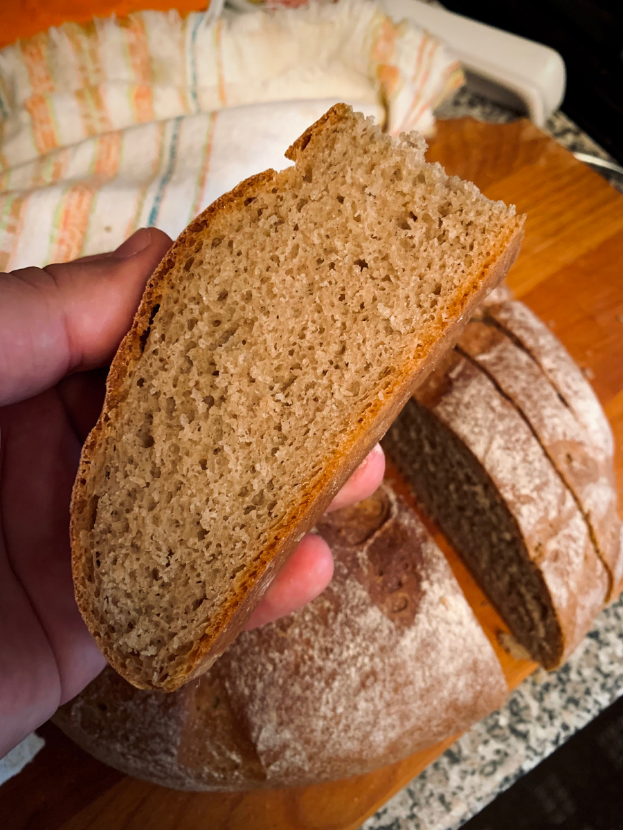 Кто искал рецепт потрясающего хлеба без сахара да еще только на цельнозерновлй муке - записывайте: 🟣Рецепт: 300мл теплой воды (можно молоко) 470гр цельнозерновой муки (просеять) 7го дрожжи (сухие) 0,5 ч.л сахара ( я использовал “Fit Parad 7” 1 пакетик) 1ч,л соли 2,5ст.л подсолнечного масла 🟣Приготовление: Развести соль, сахар и дрожжи в теплой воде. Хорошо растворить. Я далаю это венчиком). Добавляем муку и подсолнечное масло. Замешиваем тесто. Можно руками. Я вымешивал тесто 7 минут в комбайне, затем вымешивал 3 минуты руками. Сформировал колобок, смазал подсолнечным маслом и положил в емкость (смазанную так же подсолнечным маслом). Накрыл полотенцем и убрал в теплое темное место на подъем ( 1 час). После того как тесто поднялось, я его по кругу собрал в середину колобка, перевернул, и выложил на пергамент. На противень. Сформировал ровный круг ( вы можете разделить данный колобок на две части, получится два средних хлеба, я делал один большой), сделал надрезы произвольные и
