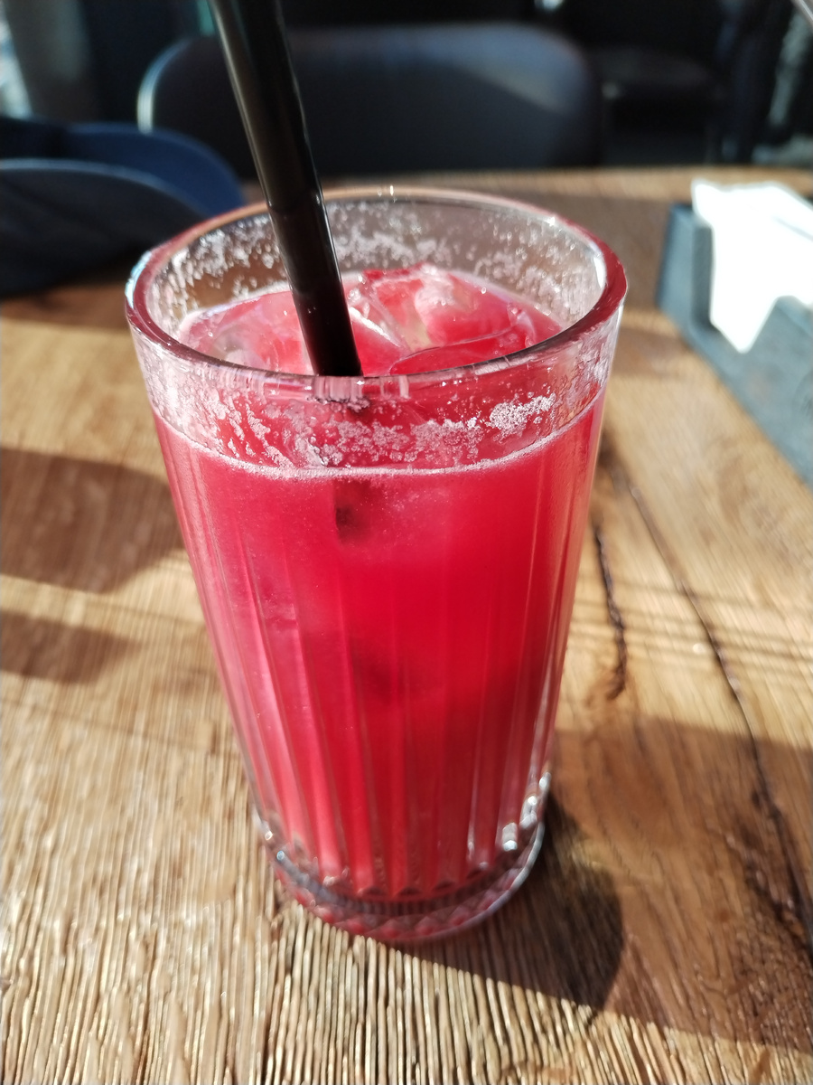 На дворе конец июля, и я успел заскочить в Июль на набережной Марка Шагала. Интерьер приятный, в тёмных тонах. Двухсветное пространство, пышные люстры, спокойная музыка средней громкости. Столики на веранде, на первом и втором этажах. Витрина с десертами зовет сорваться с диеты. Немного разочаровало отсутствие формы для бронирования столика на сайте ресторана. Сайт вообще сделан не очень, меню нечитабельно. На первом этаже слегка ощущаются запахи кухни. Персонал вежливый. 1. Рубиновый закат. Лимонад из граната и малины. Вкус спокойный, не слишком насыщенный. Приятная малиновая кислинка радует, а вот гранат чувствуется очень слабо. Вкусно, но без восторга. 7/10 2. Цветки цукини и пармезан Очень необычное блюдо. Цветки наполнены пряной теплой начинкой из груши, орехов, трюфельного масла и сметаны, обжарены в кляре и посыпаны пармезаном. Пряный, сладковатый вкус начинки дополняется солоноватостью кляра и пармезана. Текстура интересная, кусочки приятно сопротивляются. Молодой кабачок приг