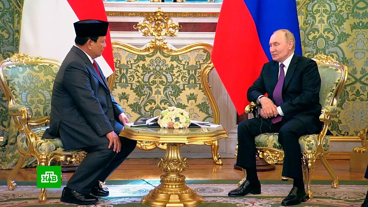 [ Смотреть видео на сайте НТВ ] Сегодня в Кремле прошли важные переговоры — Владимир Путин принял избранного президента Индонезии Прабово Субианто. Пока он занимает пост министра обороны, но уже в октябре вступит в должность. Субианто всячески подчеркивает, что намерен укреплять связи с Москвой — он поддерживает открытие в Джакарте нашего генконсульства и старт прямых авиарейсов на Бали, которые, как заявляли в компании «Аэрофлот», появятся осенью. Есть интерес к совместным проектам в энергетике, в том числе атомной. Военно-техническое сотрудничество Индонезии с Россией Пробово Субианто курирует с 2019-го, когда занял пост министра обороны страны. За эти годы ему удалось расширить производство боеприпасов и закупку зарубежной военной техники. Все-таки почти 300 миллионов населения надо как-то защищать. В марте текущего года он выиграл президентские выборы. Его политическим кумиром является Ататюрк, хотя сам Субианто — зять легендарного индонезийского лидера Сухарто. Но ориентиры понятн