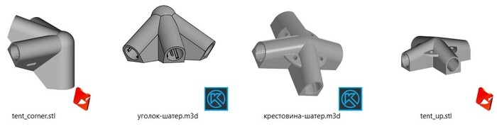 Как я и обещал, вот файлы STL для печати на 3D принтере крестовин шатра. Диаметр отверстий 18.5 и 24 мм. Ну это еще не все - в архиве есть файлы .m3d Компас 3D для самостоятельного изменения модели. Не ругайте сильно, т.к. я самоучка в CADах. ) Ссылка (пароль pikabu) - https://disk.yandex.ru/d/S16EEsZgjQLhTQ