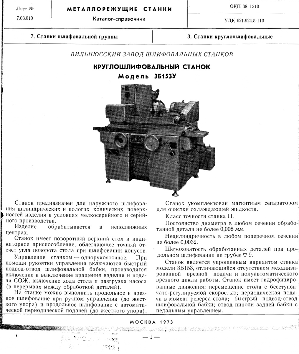 Технические характеристики на круглошлифовальный станок 3Б153У