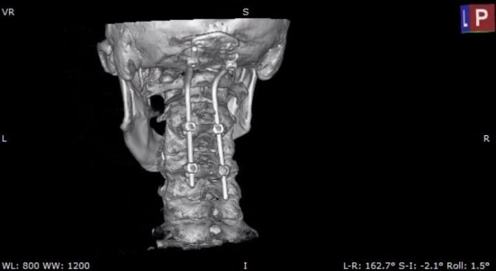 Воронежские врачи прооперировали мужчину, который оступился и упал в подъезде дома. Об этом сообщили в городской клинической больнице скорой медпомощи № 1 сегодня, 31 июля. 42-летний пациент упал и ударился затылком. После чего он почувствовал боль и неудобства в шее, лёгкое онемение и слабость рук, которые вскоре прошли. Мужчину госпитализировали. Врачи обследовали шейный отдел позвоночника и выявили перелом второго шейного позвонка (С2) со смещением отломка. Специалисты решили провести операцию — окципитоспондилодез («закрепление повреждённых позвонков верхнего шейного отдела. Позвонки и кости черепа соединяют в единый блок с помощью специальных креплений». — Прим. «Ё!»). Фото: БУЗ ВО ВГК БСМП № 1 Вскоре пациент почувствовал лучше и даже смог сесть в жестком ортопедическом воротнике. Его выписали на четвёртые сутки после операции.