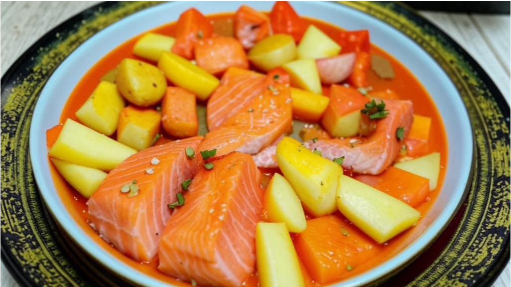 Ингредиенты: Шаг 1. Очистите картофель, разрежьте на четвертинки, сварите в подсоленной воде до готовности, слейте воду. Шаг 3. Подготовка заправки: мелко порубить чеснок, смешайте со сметаной и хреном, поперчите, посолите. Шаг 4. Подготовьте семгу: снимите филе семги с кожи, мякоть нарежьте крупными кубиками, добавьте соль, перец. Шаг 5. Подготовка цуккини: нарежьте мелкими кубиками, обжарьте в масле в течение 3-4 минут, добавить картофель и обжаривать еще 5 минут. Шаг 6. Добавьте к картофелю и цуккини рыбу, готовьте еще 3-4 минуты. Снимите с плиты и дайте постоять еще 2-3 минуты. Шаг7. Подавайте рагу с соусом. Приятного аппетита! Еще больше интересных и вкусных рецептов вы найдете на нашем сайте www.vseznania.ru