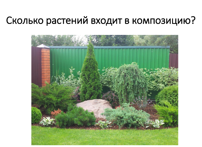 Действительно, в одном из моих мастер-классов мы считали количество кустарников в композиции. Вышло 11 штук. И это я еще не учитывала многолетники.