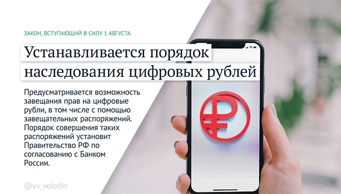 Устанавливается порядок наследования цифровых рублей