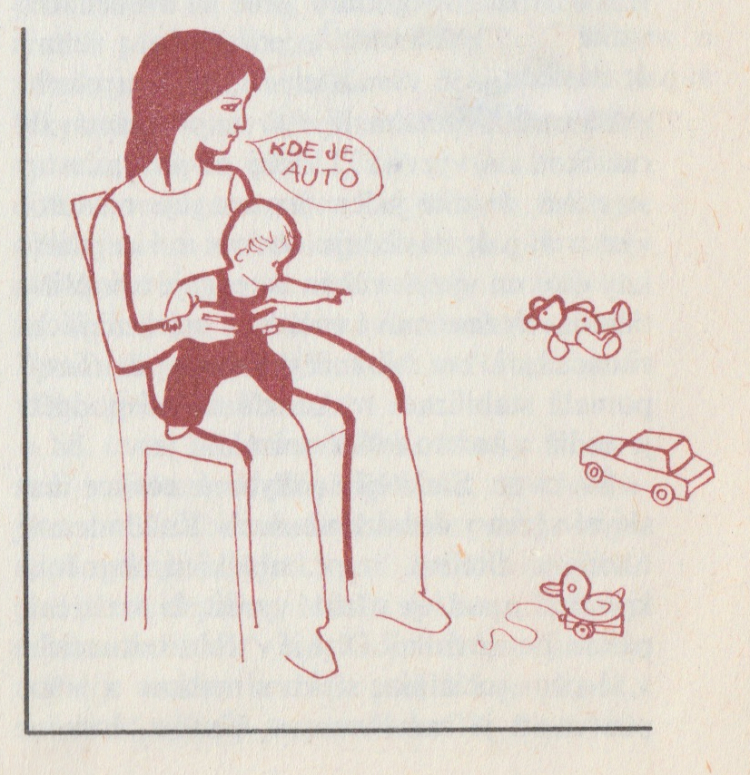 Цель воспитания: до 9-го месяца ребёнок должен обогатить словарный запас слов, которые он понимает и на которые реагирует определённым образом (обогащение пассивного словарного запаса). В лепетании он должен продвинуться вперёд от произнесения отдельных слогов и повторения их (ба-ба-ба) до дублирования их (ба-ба). Некоторые дети начинают произносить отдельные гласные или группы гласных во взаимосвязи с определённым объектом (предметом, лицом) или деятельностью, что можно считать за первое активное слово. Большинство детей произносят первое активное слово на 9-15-ом месяце жизни. Развитие пассивной речи. Развитию пассивного запаса слов способствуют и в третьем квартале упражнения 74, 75, 76, которые были приведены нами в главе о воспитании детей на 4-6-ом месяце жизни. Отработка сложных двигательных реакций на объект, обозначенный словом. Когда ребёнок реагирует поворотом головы на обозначенный словом объект можно отработать более сложные моторные реакции, например, указание пальцем на