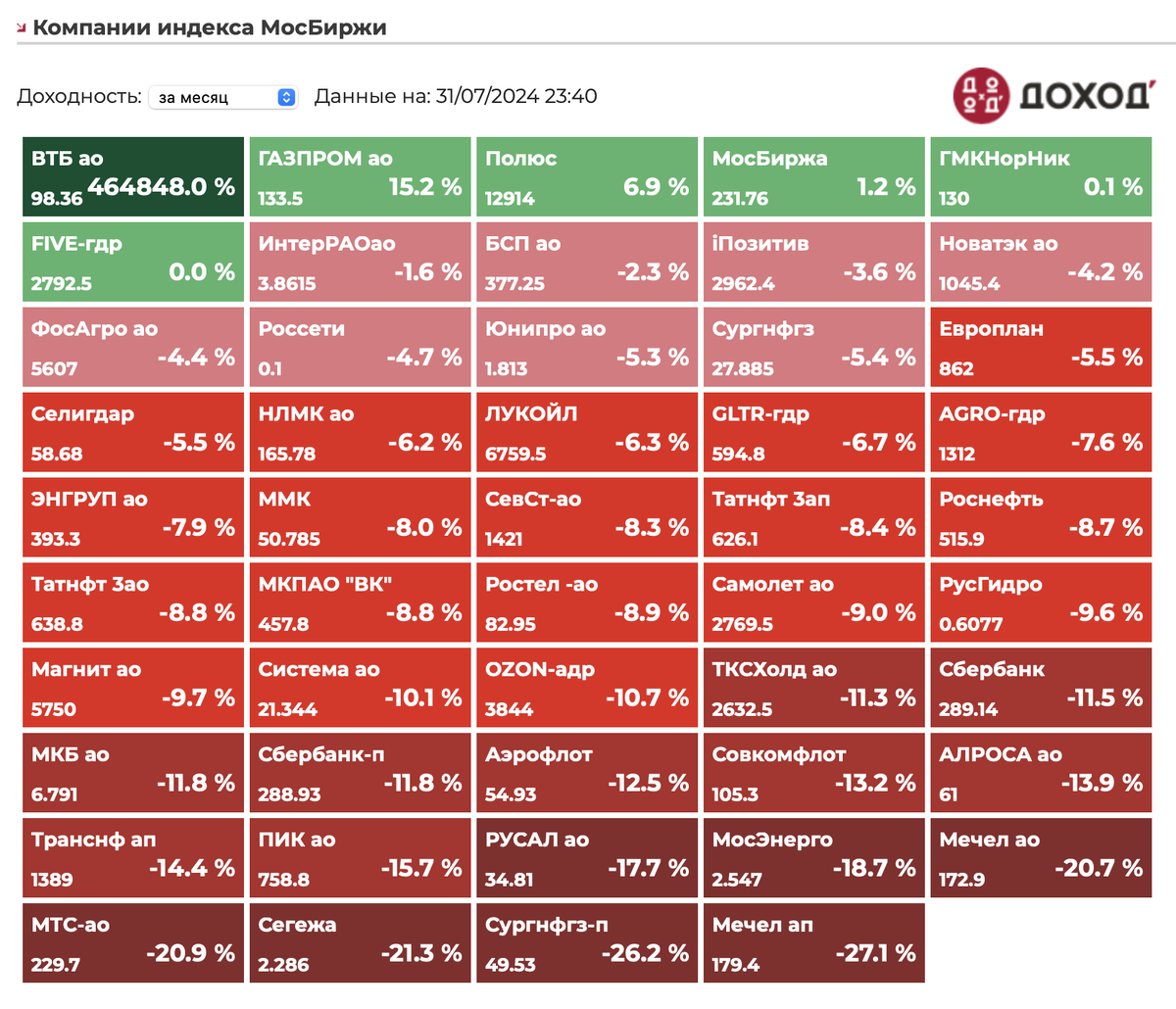 Лидеры роста и падения за месяц.