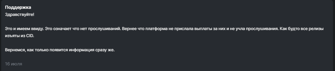 Следующая причина в статистике это то что content ID, который на минуточку они же и должны показывать где используется моя музыка, они мне ответили: