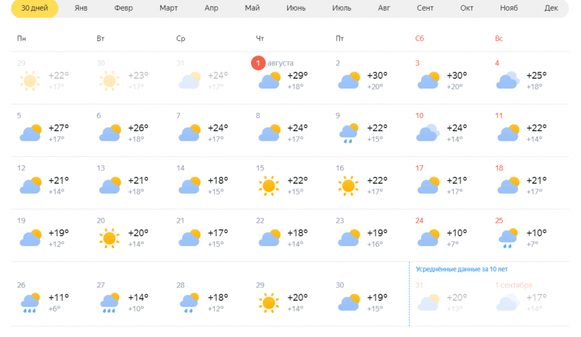 Сегодня стартовал последний месяц лета. Портал Om1 Новосибирск изучил несколько погодных ресурсов, чтобы выяснить, порадует ли август нас жарой и получится ли ещё вдоволь накупаться? На ближайшие дни Западно-Сибирский гидрометцентр обещает в Новосибирске жаркую погоду. Так, сегодня, 1 августа, столбики термометров поднимутся до +29…+31 градуса. Во второй половине дня местами ожидается небольшой дождь и грозы. В пятницу, 2 августа, температура станет чуть выше — +30…+32 градуса. Осадков при этом не ожидается. А в субботу, 3 августа, воздух прогреется уже до +31…+33 градусов. Днём возможен кратковременный дождь и гроза. Ночные температуры в оба дня составят от +17 до +20 градусов. По данным сервиса «Яндекс.Погода», 4 августа станет немного прохладнее — температура опустится до +25 градусов, а день будет пасмурным. На неделе с 5 по 11 августа температура в городе будет колебаться от +27 до +22 градусов. Затем практически две недели, с 12 по 23 августа, дневные температуры будут держаться
