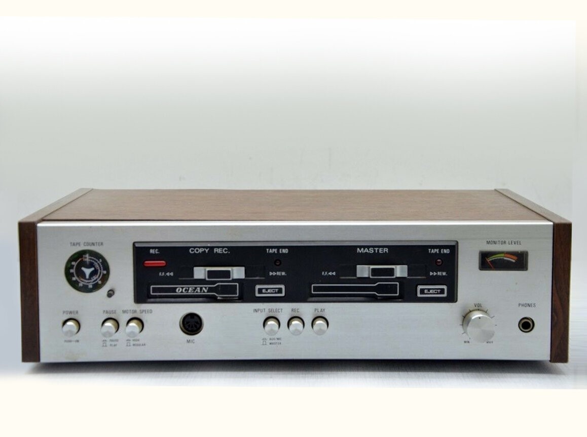 Многие знают OCEAN, как производителя магнитол из далеких 70-х. На задней панели продукции была маркировка "Made in Japan" однако в самой Японии кассетники не продавались, а реализовывались преимущественно в европейской части планеты. Похожая ситуация наблюдалась и с продукцией BENYTONE. Вернемся к домашнему дупликатору. При взгляде на фронтальную панель, сразу можно определить функциональное предназначение. В общем корпусе и с деревянным кабинетом спрятаны два механизма от кассетных магнитол, один из которых с функцией записи. Украшением всей конструкции, несомненно, является механический счетчик расхода ленты с необычным дизайном. Редкие владельцы сего девайса, на форумах, называют аппарат "double cassette copier", однако судя по гнездам коммуникации на задней панели можно назвать этот OCEAN и двухкассетной декой. Видео работы механизмов этого чуда техники, в ближайших публикациях. Золотая эра аудио - не переключайтесь!