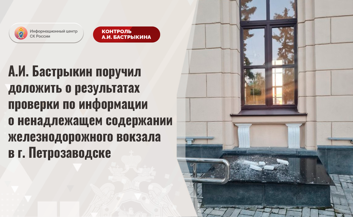 А.И. Бастрыкин поручил доложить о результатах проверки по информации о ненадлежащем содержании железнодорожного вокзала в г. Петрозаводске