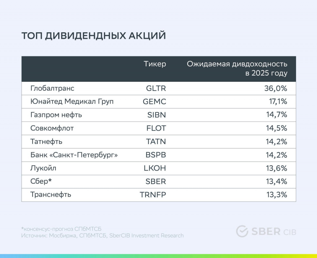 Сегодня обсудим Топ дивидендных акций России. С июня 2022 года их подборка взлетела на 165%, в то время как индекс Мосбиржи предоставил лишь 54,2% прибыли. За последний месяц оба списка снизились — на 6,2% и 4,8% соответственно. Аналитики SberCIB пересмотрели свою выборку! Внедрение: «Газпром нефть» добавлен в портфель, а в аутсайдеры ушли «НЛМК», «Северсталь», «Магнит» и «МД Медикал Груп». — «Газпром нефть»: Котировки упали более чем на 20% с начала года, и сейчас компания среди аутсайдеров. Однако аналитики предсказывают дивдоходность до 15% — один из самых высоких показателей в секторе! — «НЛМК»: Дивдоходность может остаться двузначной, но выплаты нерегулярны. Возможно, следующая декларация дивидендов только в 2025 году! — «Северсталь»: Новый этап капзатрат в стратегии развития может существенно снизить свободный денежный поток. В ближайшие два года прогнозируется дивдоходность на уровне 5–6%, если не использовать свою «денежную подушку». — «Магнит»: По итогам 2023 года только