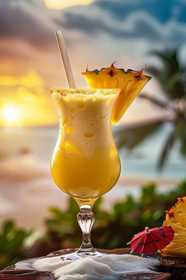 Коктейль впервые был приготовлен в 1954 году в баре отеля Caribe Hilton в Сан-Хуане, Пуэрто-Рико, толчком к созданию рецепта послужило начало продаж кокосовых сливок Coco López. В 1978 году пина колада была объявлена официальным напитком Пуэрто Рико. 1. Смешай все ингредиенты в блендере до получения однородной массы. 2. Перелей в бокал и укрась кусочком ананаса или вишенкой.🍍🍒