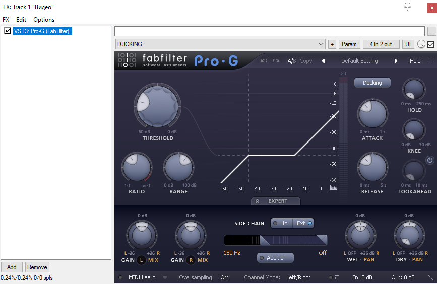 1. Делаем подготовку для Ducking'a 1.1 Для начала, переносим наше аниме на дорожку и первым что делаем, это добавляем к дорожке с видео, плагин - Pro G от FabFilter, это нужно чтобы сделать Ducking.