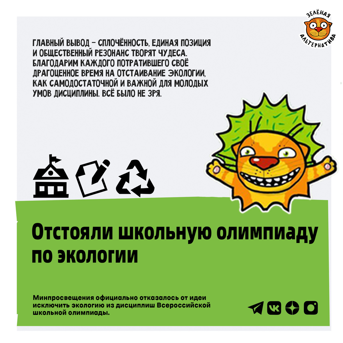 Вчера произошло торжество справедливости — экологи, учителя, ученики, политики и просто неравнодушные граждане не дали Министерству просвещения уничтожить Всероссийскую школьную олимпиаду по экологии. Многочисленные обращения, петиции, заявления, запросы и общественный резонанс вынудили ведомство капитулировать и официально отказаться от идеи оставить соревнования школьных умов без экологической дисциплины. Это наша общая победа добра над злом.