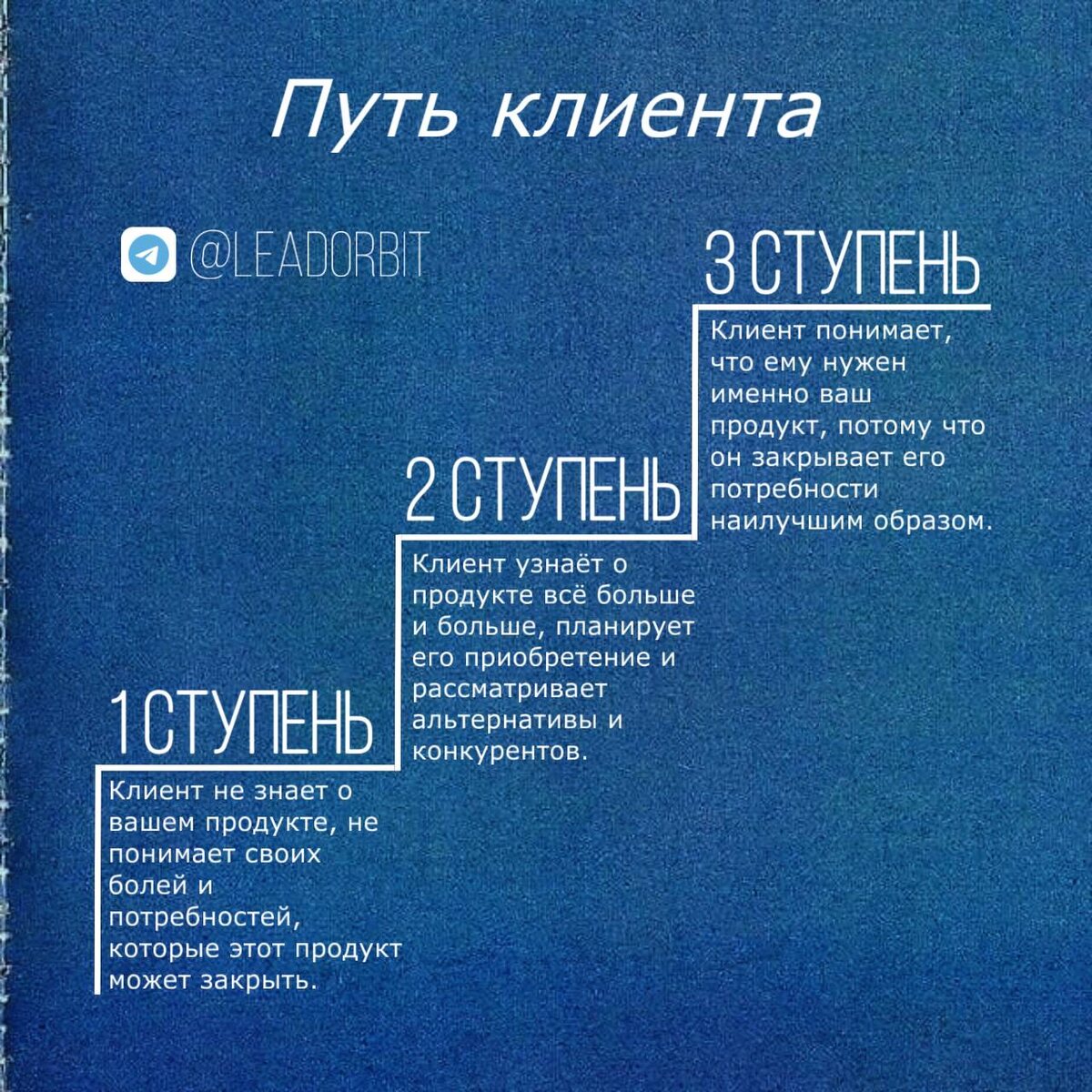 Часто мы хорошо понимаем возможности и ограничения продвигаемых нами продуктов или услуг: что они могут и что не могут. Но задумываемся ли мы о том, что наш потенциальный будущий клиент не знает о возможностях нашего продукта ничего? Путь клиента - это шаги, которые проходит клиент: • в начале пути он не знает возможностей нашего продукта и даже не понимает свои боли и потребности; • в середине пути он узнаёт о продукте всё больше и больше; • и в конце пути клиент понимает, что ему нужен наш продукт, что он закрывает его потребности наилучшим образом из всех альтернативных вариантов. Зная и понимая этот путь, мы можем выступить для наших потенциальных клиентов проводниками. То есть мы можем помочь им пройти этот путь для того, чтобы: • клиент быстрее понял, насколько ему продукт нужен или не нужен; • и если ему продукт нужен, чтобы он быстрее принял решение о покупке. Увлекательно пишу про B2B и не только в телеграм, присоединяйся!