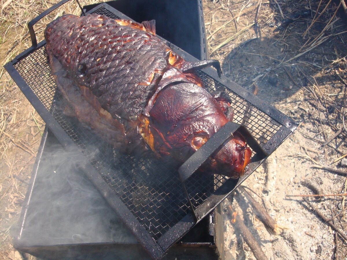 Мы готовим рыбу в шарабане просто. Для этого можно использовать ту рыбу, которую вы больше всего любите, но мы чаше всего рыба для шарабана у нас: крупный сазан, сом, сиг или другую речную рыбу. Рыбу разрезаете не как обычно - с брюха, а со спины - тогда в неё вместится больше начинки и она полностью пропитается её соками. Начинку мы обычно делаем из резанного репчатого лука, свежих помидор, зелени,болгарский перец,картошка.Начинку до полу готовности доводим на сковороде. Перчим рыбу и солим внутри и снаружи, на коже можно сделать неглубокие надрезы, чтоб лучше прожарилась.Под шарабаном разводим костёр и пока дрова разгораются укладываем рыбу в шарабан. Можно положить на решетку под рыбу свежие ветви фруктовых деревьев - они придают мясу своеобразный аромат. Запекается рыба от 20 до 40 минут в зависимости от размера самой рыбы. Приятного всем апетита.