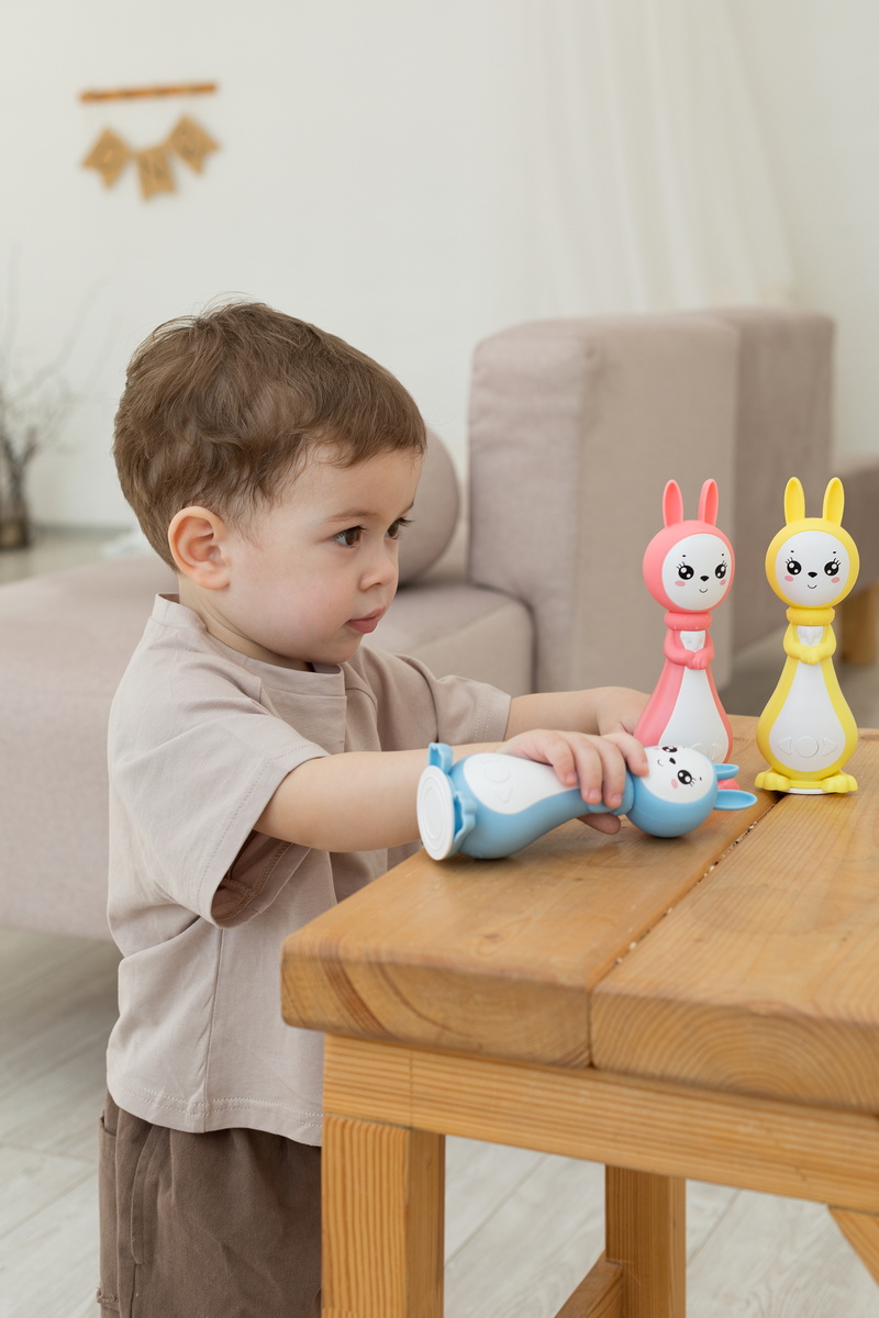 Годовалый ребенок все еще познает мир с помощью тактильных ощущений, ему важно все трогать, кусать и обсасывать. Для самых маленьких компания BertToys разработала игрушку Зайчик Няня, его можно грызть, использовать как погремушку, слушать колыбельные песенки и много других интересных звуков. Малышу удобно держать игрушку в руке, ею можно активно манипулировать и даже ронять, и еще с ней безопасно засыпать.