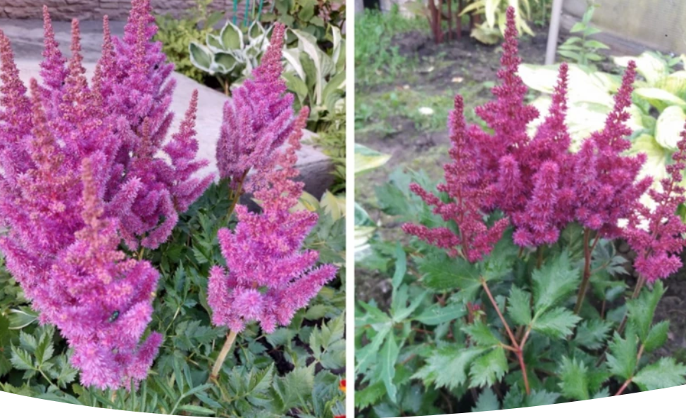 В саду астильба прекрасно будет смотреться со многими многолетниками. Замечательно смотрится цветник из одних астильб разных сортов с разнообразными по цвету и форме соцветиями.
