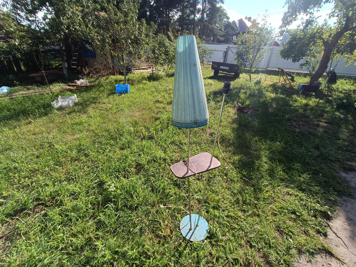 В Подмосковье включили сезон дождей, так что ничего полезного сильно не сделаешь - сыро. Но у меня ж в отцовском доме три старых сарая, которые разгребать и разгребать 🤣Вот и гребу потихоньку. Сегодня покажу найденные люстры и светильники - я обожаю винтажный свет, так что в моей квартире он везде: на потолках, полу и стенах. В целом горжусь, что за несколько лет удалось собрать неплохую коллекцию хрустальных люстр и бра. Всем им нашлось место и все они оказались кстати. К тому же, оказалось, что это неплохое вложение - еще несколько лет назад хрустальные чехословацкие люстры с радостью отдавали за 1000 рублей, сейчас их ценник уверенно идёт к 10 тысячам и выше. Увы, хрустальных чешек в сараях мне не насыпали. Но кое-что интересное есть. Во-первых, торшер со столиком. Потенциально удобная вещь. И его то первым я и отправлю на восстановление. Второй плафон - а плафоны у него из металла и ленточек - тоже найден. Постараюсь сохранить максимально первоначальный вид, хотя насчёт плафон