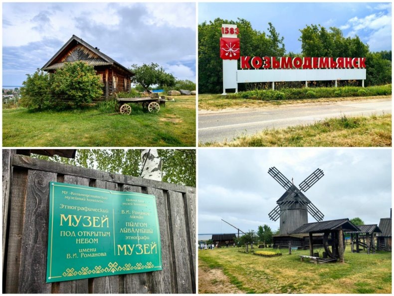 Люблю этнографические музеи под открытым небом. Во время путешествия по Марий Эл оказались мы в славном городе Козьмодемьянске. Здесь находится единственный музей, посвященный истории и культуре горных марийцев. Тут стоит уточнить, что марийцы делятся на три территориальные группы: горные, луговые и восточные. Козьмодемьянск — центр Горномарийского района, город-порт на берегу Волги. Марийский этнографический музей имени В.И. Романова в Козьмодемьянске — как раз то место, где можно узнать всё о горномарийцах, их культуре и быте, традициях и просто отлично провести время. Обязателен к посещению в Марий Эл! Даже не раздумывайте, просто поезжайте! Чудесное место, потрясающие люди, удивительная атмосфера. Если честно, я переживала, ведь в тот день шёл ливень, который ну совсем к подобным прогулкам не располагал. Но по каким-то неведомым причинам, как только мы подошли к воротам музея, тучи разошлись и выглянуло солнце. Картинка просто с первых шагов очаровала. А приятный гид первыми словам