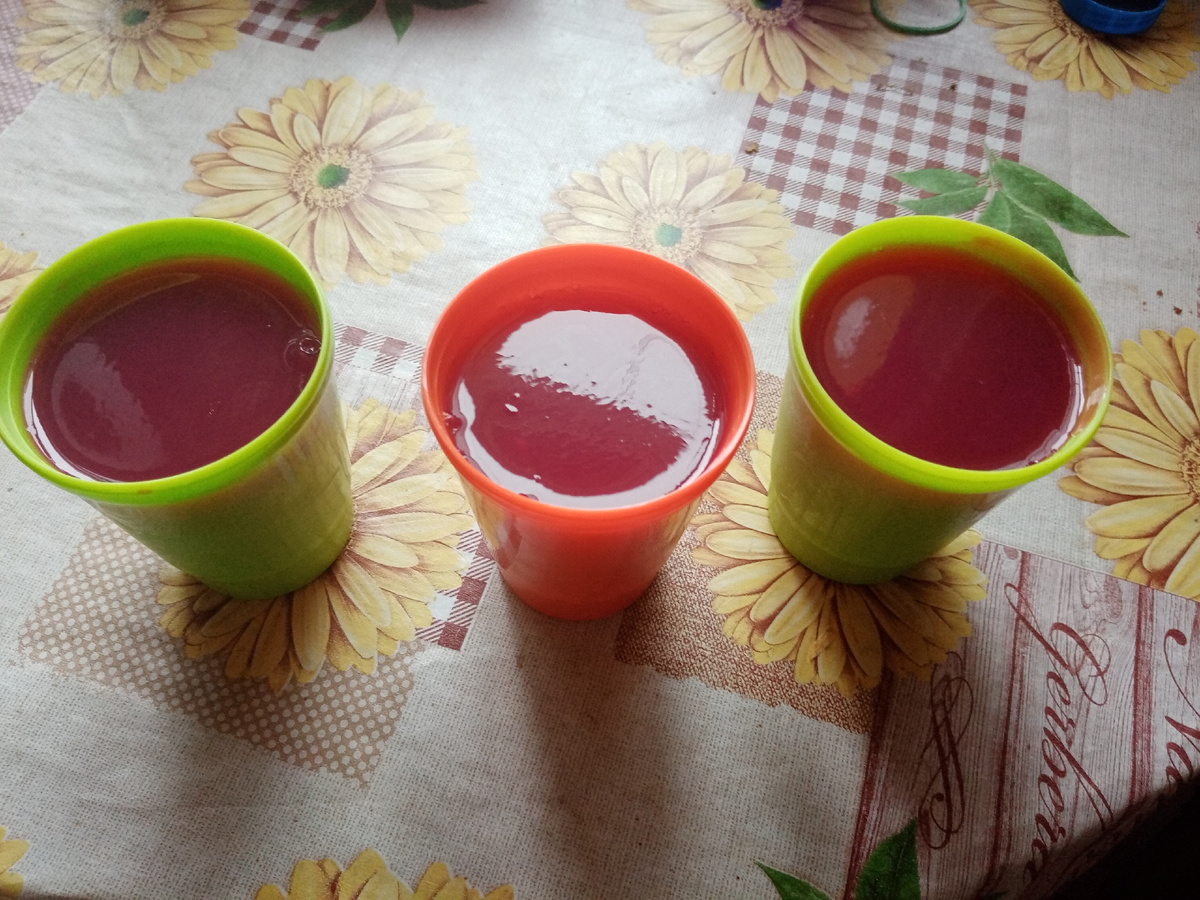 Муж приготовил желе. Гораздо вкуснее и полезнее, чем в магазине. Ягоды у нас свои - малина красная и желтая, красная и черная смородина. Компота уже не хочется, а вот желе очень кстати.
