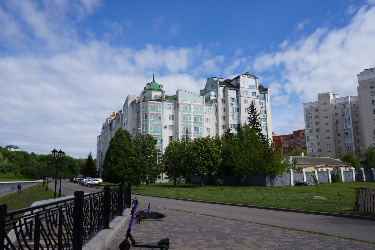 Отлично помню, как строили дом видный справа на фото. Это было тоже в самом начале нулевых. По тем временам точно это считалось элитным жильём. Но я бы поостерегся приобретать тут жильё. Весенние паводки лужи приносят прямо в подъезд. Если же повториться поводок 2003 года то первый этаж тут, скорее всего, будет плавать.