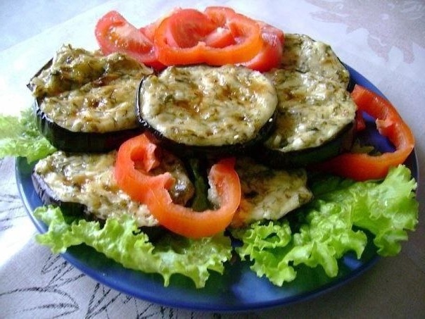 Это вкуснейшая закуска на любом столе будет съедена в первую очередь. Запечённые баклажаны колечками покрытыми пикантной намазкой. Не за эту закуску называют Царской. Хоть на праздничный стол готовьте, гости будут в восторге, но простота приготовления и продуктов позволяет их делать в любой день для семейного стола. 1) Шаг первый - Чтобы убрать возможную горечь из баклажанов и в любом случае улучшить их вкус, то сначала нарезав их колечками не более 1 см. толщиной, пересыпаем немного солью и оставляем на 20-30 минут. Они дадут сок, который затем промакиваем салфетками. 2) Раскладываем колечки баклажан на застеленный бумагой противень. Пока они просаливались можно сделать начинку-обмазку, которую и выкладываем на колечки. 3) Начинка из - натертый на мелкой терке сыр тофу смешанный с майонезом и пропущенным через пресс или мелкопорезанным чесноком. Также можно добавить в намазку немного мелконарезанной зелени. Обмазываем сверху все колечки баклажанов. 4) Разогреваем духовку на 200-210 г